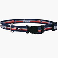 (More customer reviews)This is a very attractive New England Patriots dog collar that is fully adjustable to fit your dog. The sizing instructions worked out well for me and I have had no problems adjusting the size so my pooch can sport her team colors around her neck.